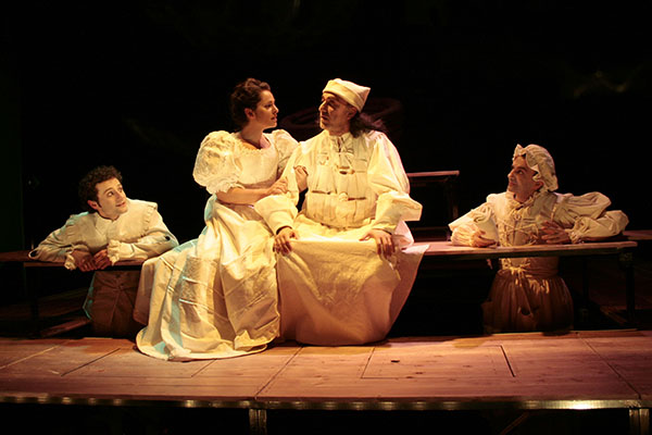 Un malato brontolone accudito da una serva petulante e ficcanaso, insolente e fedele come sapevano essere certe nostre donne, un po’ zie un po’ comari, un po’ tuttofare che governavano casali, masserie o palazzotti di signori o finti signori. Una figlia angelica, una moglie perfida, un fratello consigliere, un giovane innamorato e medici, tanti medici che millantano crediti, maschere farsesche in un mulinello a volte assordante, una danza grottesca di quel quotidiano stretto fra le pareti domestiche dove ogni sussurro si amplifica, dove covano intrighi, dove si fingono finzioni e il malato? Imaginaire…