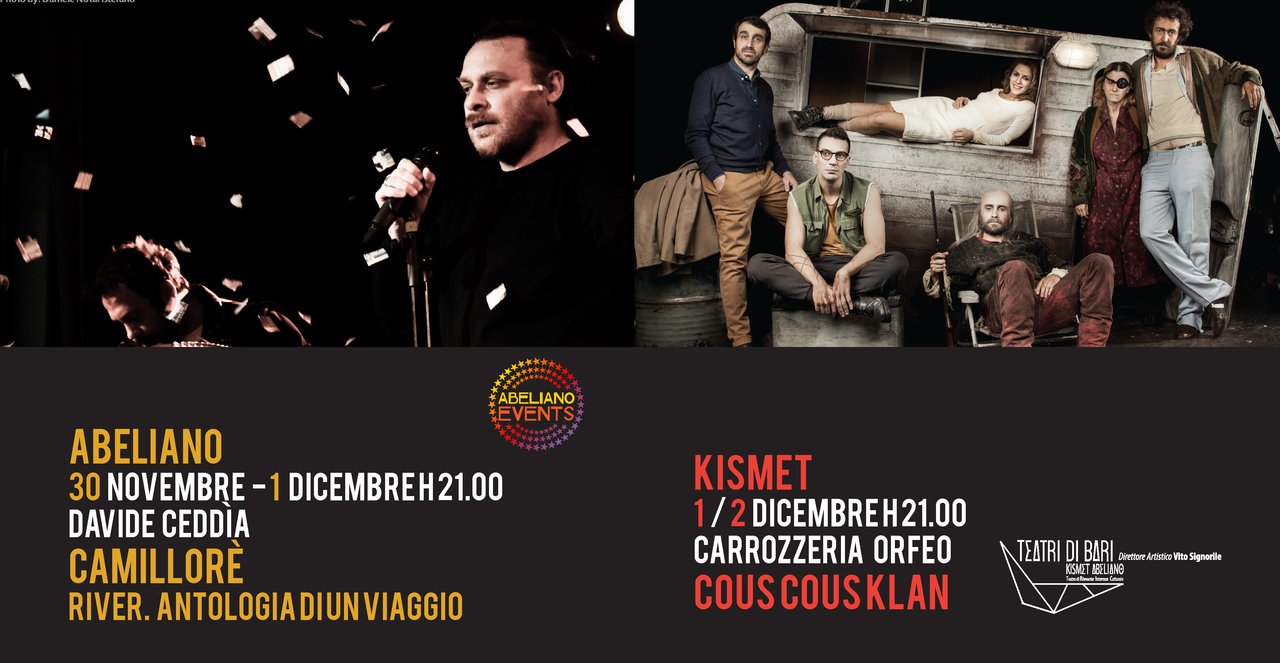 Al Teatro Kismet COUS COUS KLAN della compagnia Carrozzeria Orfeo va in scena il 1 e il 2 dicembre per la rassegna Kismet Farsi Mondo a cura di Teresa Ludovico. Una fotografia senza fronzoli di un’umanità socialmente instabile, carica di nevrosi e debolezze, attraverso un occhio sempre lucido, divertito e, soprattutto, innamorato dei personaggi che racconta. Ironia e tragicità, divertimento e dramma si fondono, in una continua escursione fra realtà e assurdo, fra sublime e banale.