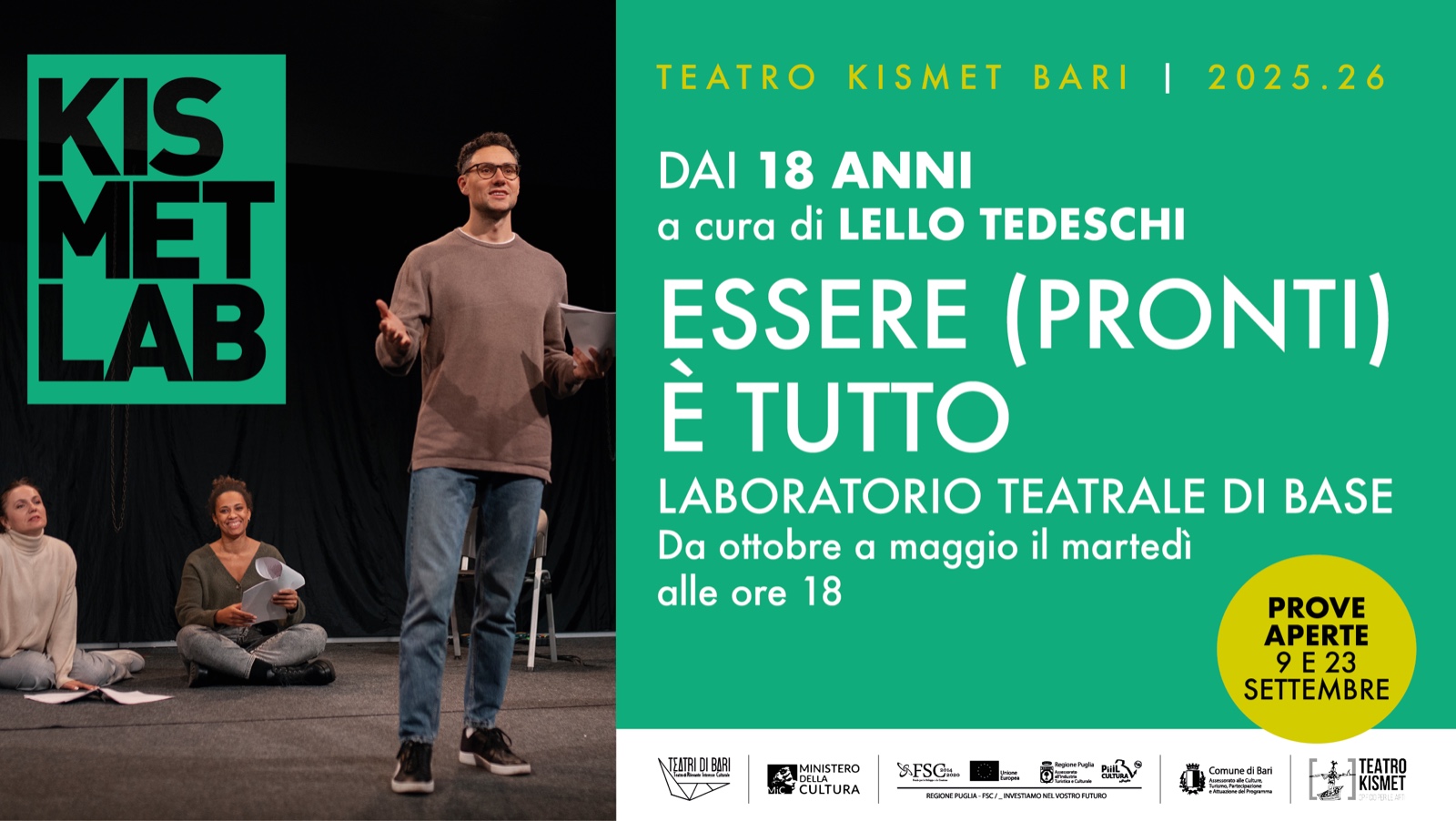 Il laboratorio, aperto a tutti dai 18 anni in su, si svolgerà presso il Teatro Kismet da ottobre a maggio, per un incontro settimanale di tre ore il martedì dalle 18.00 alle 21.00 e un periodo intensivo a ridosso dell’esito finale.