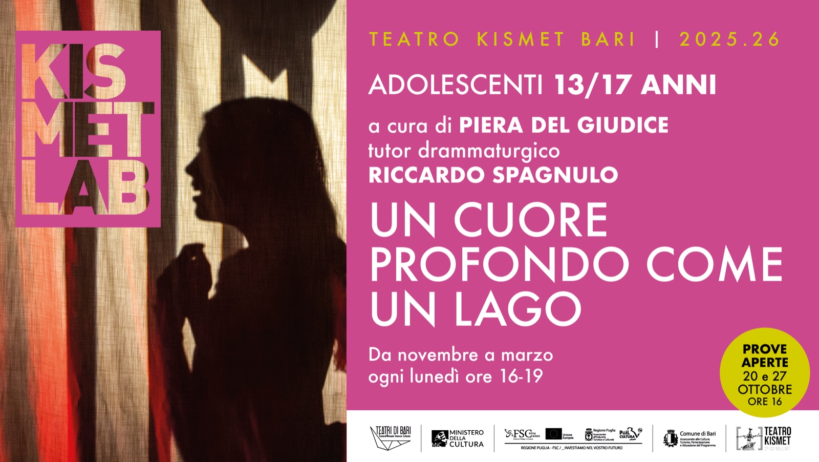 Laboratorio teatrale per adolescenti da 13 a 17 anni. A cura di Piera Del Giudice, tutor drammaturgico Riccardo Spagnulo.